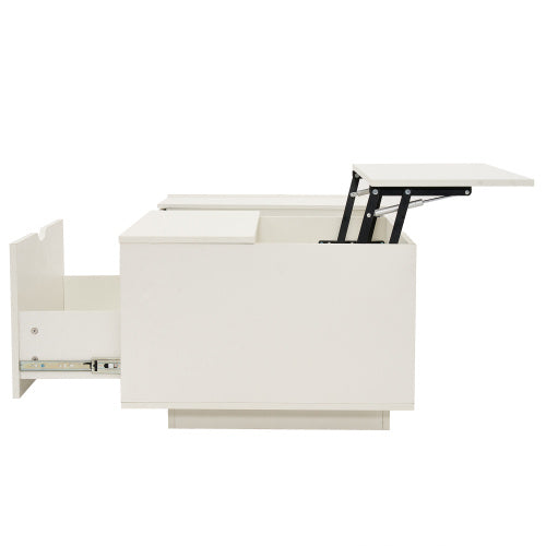 Lift Up Coffee Table with Drawer – White Wooden Tea Table for Living Room Furniture
